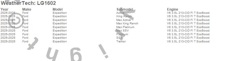 Below is an abbreviated list of applications for the LampGard.Expedition, Ford, 2025