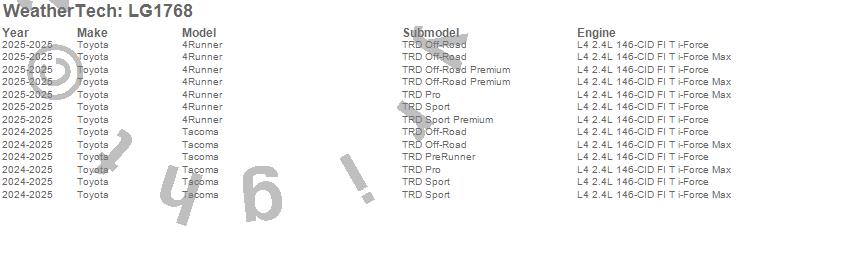 Below is an abbreviated list of applications for the LampGard.4Runner, Tacoma, Toyota, 2025, 2024