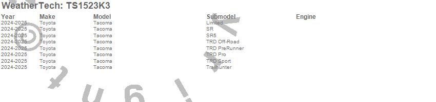 Brand: WeatherTechPart Number: TS1523K3Window Shade Type: UPC: 787765305556