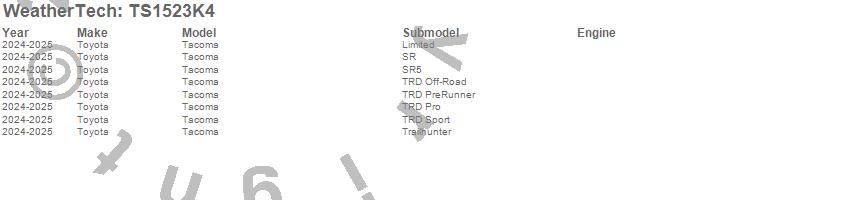 Below is an abbreviated list of applications for the WeatherTech SunShade Full Vehicle Kit.Tacoma, Toyota, 2025, 2024