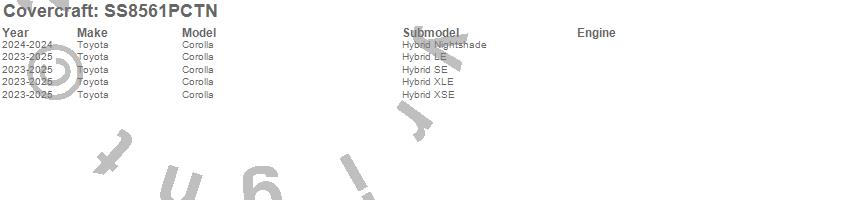 Below is an abbreviated list of applications for the SeatSaver Custom Seat Cover.Corolla, Toyota, 2025, 2024, 2023