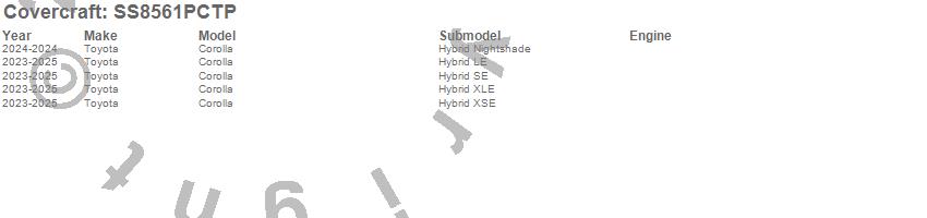 Below is an abbreviated list of applications for the SeatSaver Custom Seat Cover.Corolla, Toyota, 2025, 2024, 2023