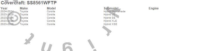 Below is an abbreviated list of applications for the SeatSaver Custom Seat Cover.Corolla, Toyota, 2025, 2024, 2023