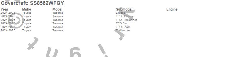 Below is an abbreviated list of applications for the SeatSaver Custom Seat Cover.Tacoma, Toyota, 2025, 2024