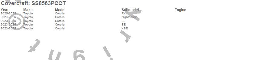Below is an abbreviated list of applications for the SeatSaver Custom Seat Cover.Corolla, Toyota, 2025, 2024, 2023