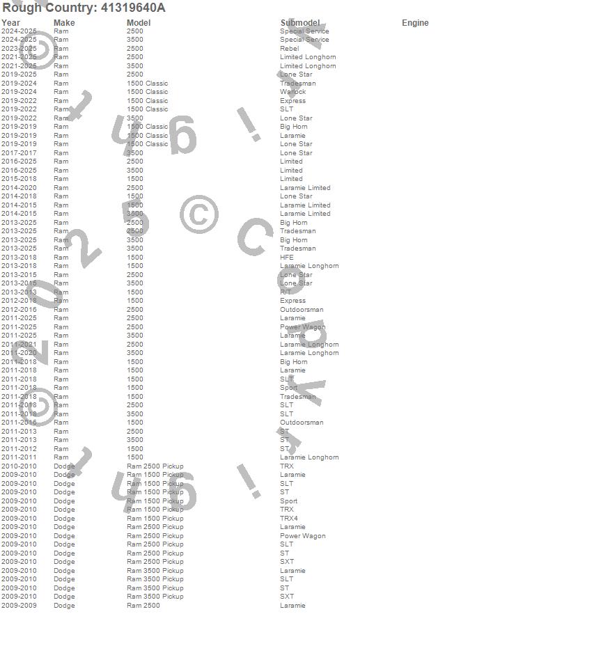 Brand: Rough CountryPart Number: 41319640ATonneau Cover Type: Textured Black Powder Coat - Aluminum - TailgateUPC: 840269972300