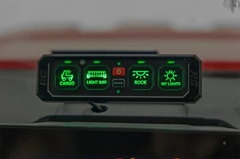 Buy this Switch Panel Rough Country 70965 4 Gang - RGB Backlit Buttons - Multifunction Modes here at SVCustoms.com an authorized Rough Country Rocker Type Switch dealer and distributor.