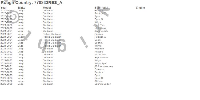 Brand: Rough CountryPart Number: 770833RES_AShock Absorber Type: Reservoir - 4-6 in. Lift - Rear - 30 in. Extended Length - 17.56 in. Collapsed Length - PairUPC: 840269975349
