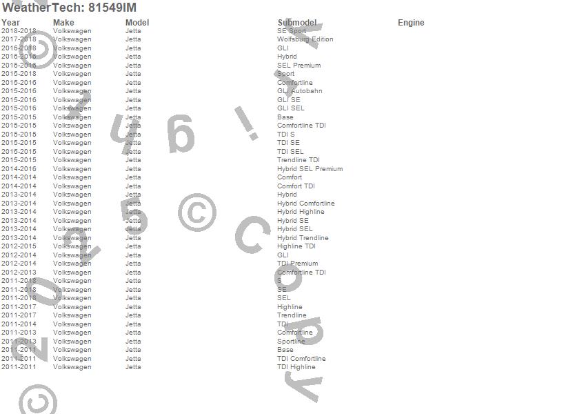 Below is an abbreviated list of applications for the Side Window Deflector.Jetta, Volkswagen, 2018, 2017, 2016, 2015, 2014, 2013, 2012, 2011