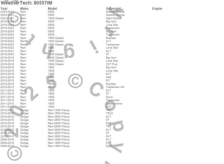Below is an abbreviated list of applications for the Side Window Deflector.1500, 1500 Classic, 2500, 3500, 4500, 5500, Ram 1500, Ram 2500, Ram 3500, Dodge, Ram, 2026, 2025, 2024, 2023, 2022, 2021, 2020, 2019, 2018