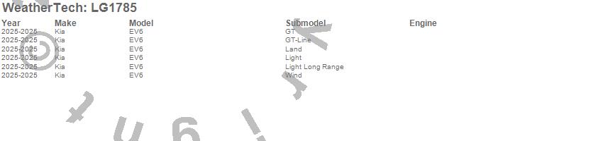 Below is an abbreviated list of applications for the LampGard.EV6, Kia, 2025