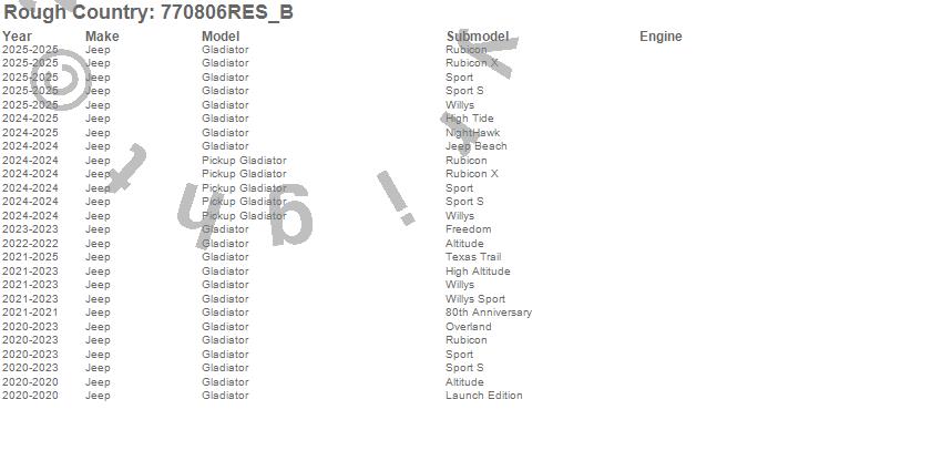 Brand: Rough CountryPart Number: 770806RES_BShock Absorber Type: Reservoir - 3-4 in. Lift - Front - 27.99 in. Extended Length - 17.56 in. Collapsed Length - PairUPC: 840269975295