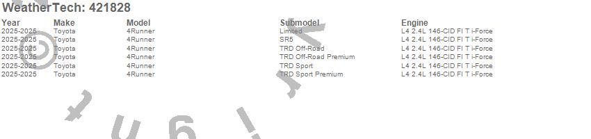 Below is an abbreviated list of applications for the Cargo Liner.4Runner, Toyota, 2025