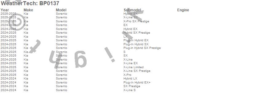 Below is an abbreviated list of applications for the BumperTopper.Sorento, Kia, 2025, 2024