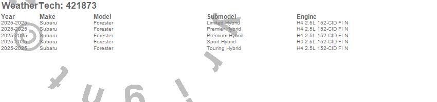 Below is an abbreviated list of applications for the Cargo Liner.Forester, Subaru, 2025