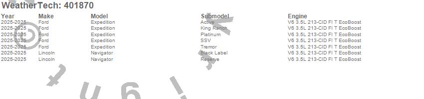 Below is an abbreviated list of applications for the Cargo Liner.Expedition, Navigator, Ford, Lincoln, 2025