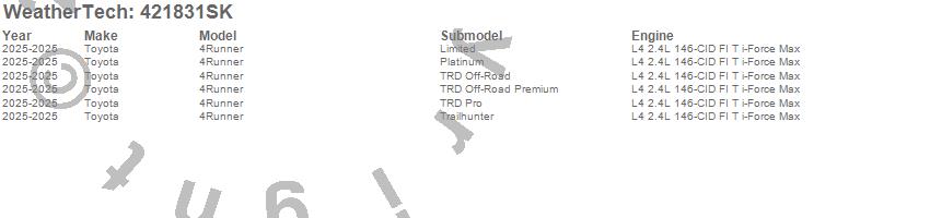 Below is an abbreviated list of applications for the Cargo Liner w/Bumper Protector.4Runner, Toyota, 2025
