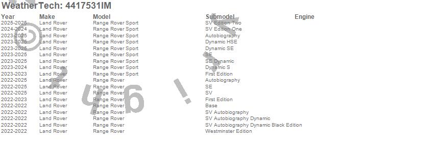 Below is an abbreviated list of applications for the FloorLiner HP.Range Rover, Range Rover Sport, Land Rover, 2025, 2024, 2023, 2022