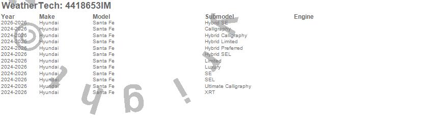 Below is an abbreviated list of applications for the FloorLiner HP.Santa Fe, Hyundai, 2026, 2025, 2024
