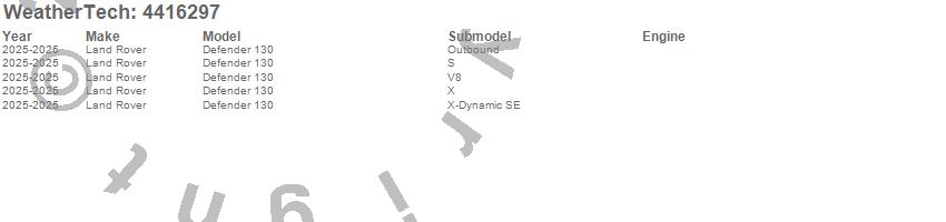 Below is an abbreviated list of applications for the FloorLiner DigitalFit.Defender 130, Land Rover, 2025