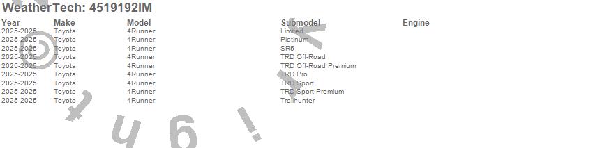 Below is an abbreviated list of applications for the FloorLiner HP.4Runner, Toyota, 2025