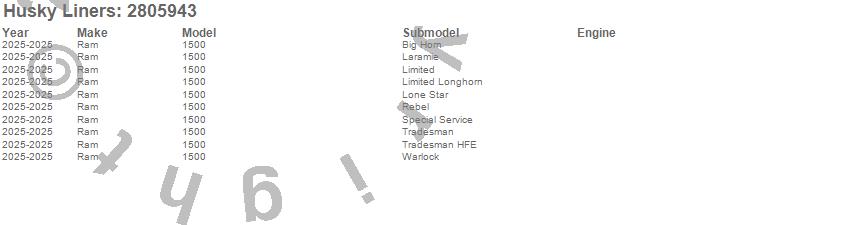 Brand: Husky LinersPart Number: 2805943Fender Flare Type: Black - 4 pc. - ABS Thermoplastic - Requires Drilling - Pocket StyleUPC: 753933014070