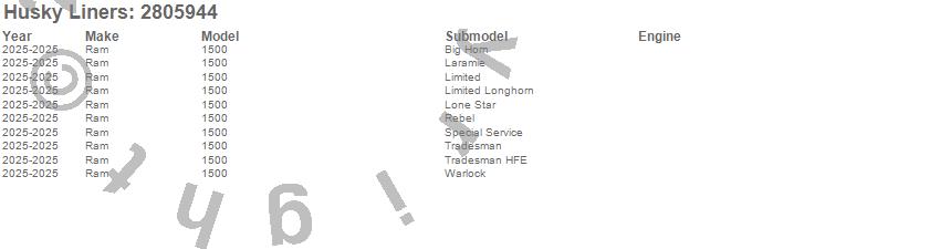 Brand: Husky LinersPart Number: 2805944Fender Flare Type: Black - 4 pc. - ABS Thermoplastic - Requires Drilling - Extended-a-FenderUPC: 753933014087