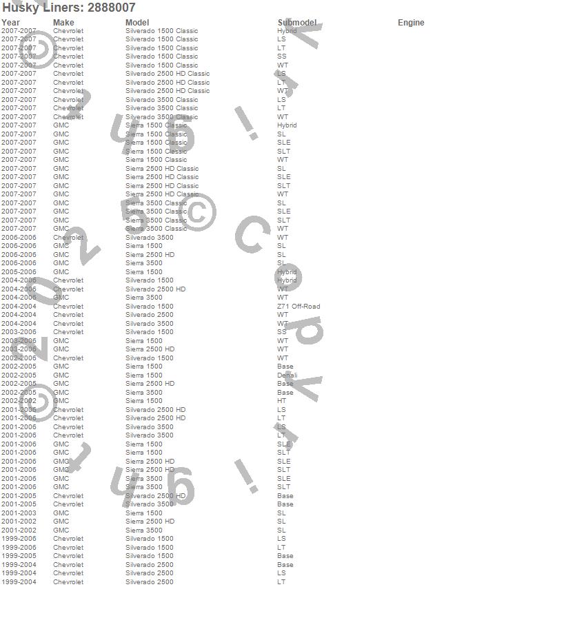Brand: Husky LinersPart Number: 2888007Truck Bed Side Rail Protector Type: Pair - Thermoplastic Olefin [TPO] - SmoothbackUPC: 753933018986