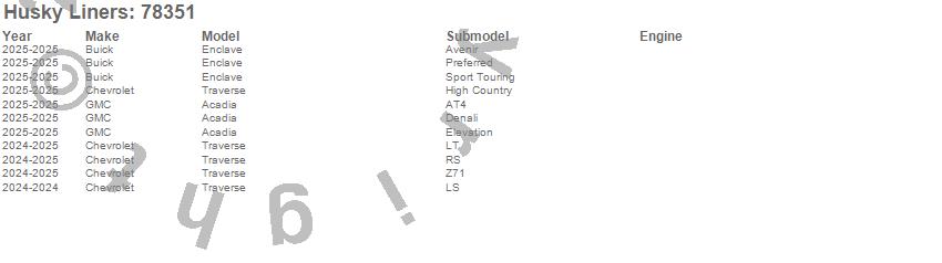 Below is an abbreviated list of applications for the X-act Contour Floor Liner.Acadia, Enclave, Traverse, Buick, Chevrolet, GMC, 2026, 2025, 2024