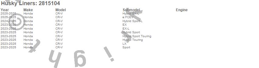 Below is an abbreviated list of applications for the Hood Shield.CR-V, Honda, 2025, 2024, 2023
