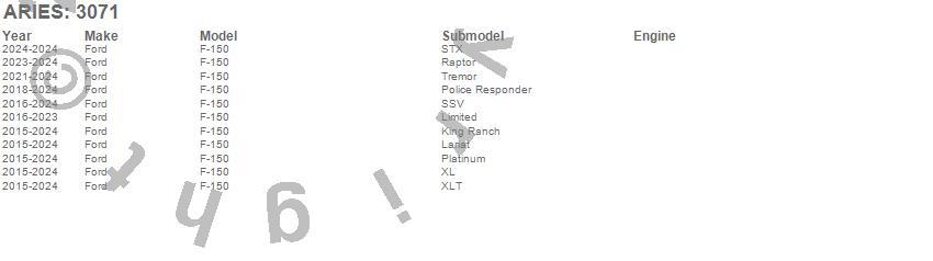 Brand: ARIESPart Number: 3071Brush Guard Type: Black SteelUPC: 849055034376