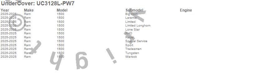 Brand: UnderCoverPart Number: UC3128L-PW7Tonneau Cover Type: Bright WhiteUPC: 840114341510