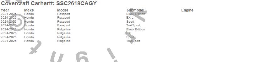 Below is an abbreviated list of applications for the Covercraft Carhartt SeatSaver.Passport, Ridgeline, Honda, 2025, 2024