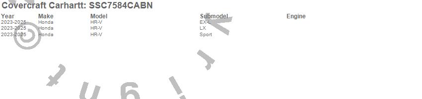 Below is an abbreviated list of applications for the Covercraft Carhartt SeatSaver.HR-V, Honda, 2026, 2025, 2024, 2023