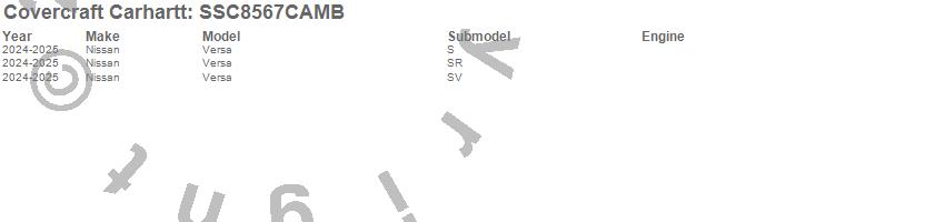 Below is an abbreviated list of applications for the Covercraft Carhartt SeatSaver.Versa, Nissan, 2025, 2024