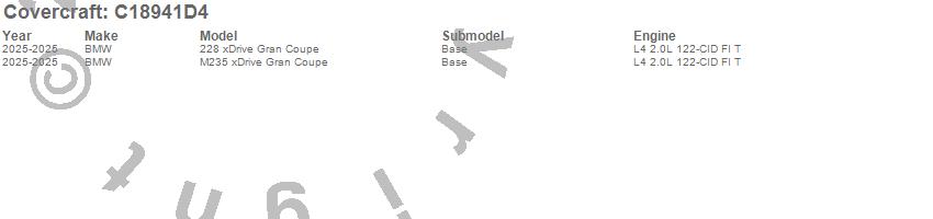 Below is an abbreviated list of applications for the Custom Fit Car Cover.228 xDrive Gran Coupe, M235 xDrive Gran Coupe, BMW, 2025