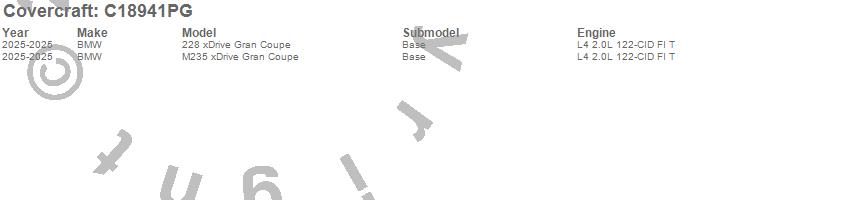 Below is an abbreviated list of applications for the Custom Fit Car Cover.228 xDrive Gran Coupe, M235 xDrive Gran Coupe, BMW, 2025