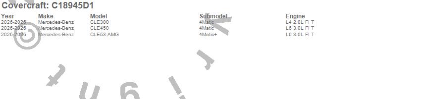 Below is an abbreviated list of applications for the Custom Fit Car Cover.CLE300, CLE450, CLE53 AMG, Mercedes-Benz, 2026