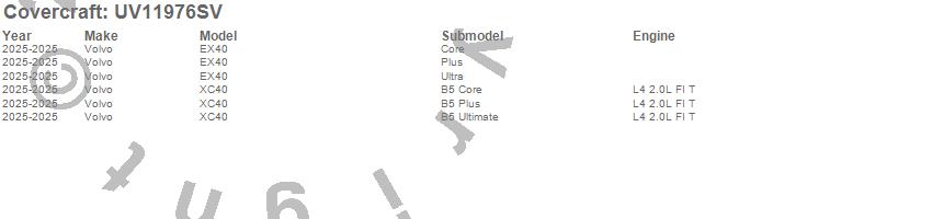 Below is an abbreviated list of applications for the UVS100 Interior Window Cover.EX40, XC40, Volvo, 2025