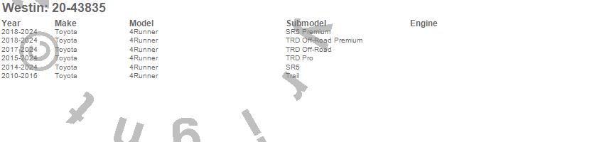 Below is an abbreviated list of applications for the Outlaw Running Boards.4Runner, Toyota, 2024, 2023, 2022, 2021, 2020, 2019, 2018, 2017, 2016, 2015, 2014, 2013, 2012, 2011, 2010