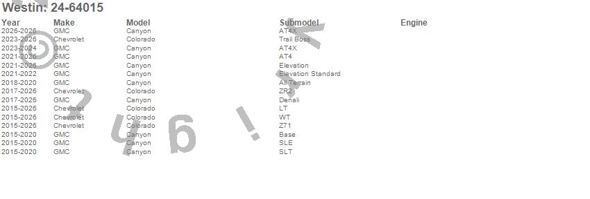 Below is an abbreviated list of applications for the AT6 Running Boards.Canyon, Colorado, Chevrolet, GMC, 2026, 2025, 2024, 2023, 2022, 2021, 2020, 2019, 2018, 2017, 2016, 2015