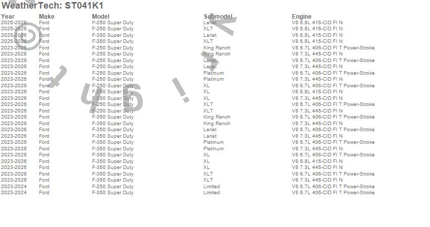 Below is an abbreviated list of applications for the Sill Protector.F-250 Super Duty, F-350 Super Duty, Ford, 2026, 2025, 2024, 2023