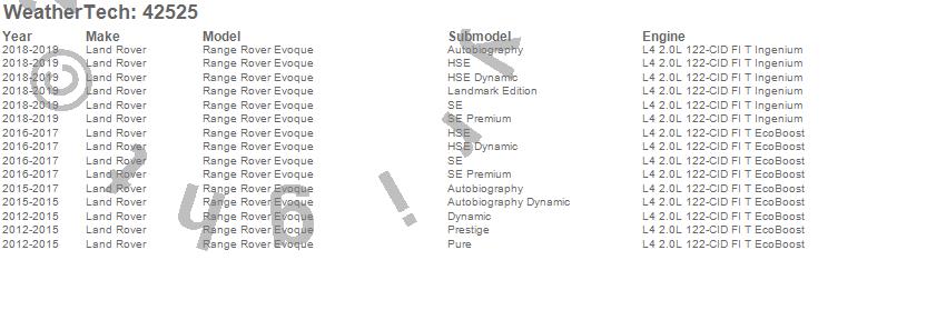 Below is an abbreviated list of applications for the Cargo Liner.Range Rover Evoque, Land Rover, 2019, 2018, 2017, 2016, 2015, 2014, 2013, 2012