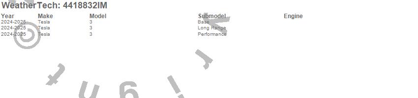 Below is an abbreviated list of applications for the FloorLiner HP.3, Tesla, 2025, 2024