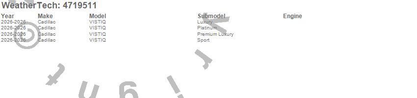 Below is an abbreviated list of applications for the FloorLiner DigitalFit.VISTIQ, Cadillac, 2026