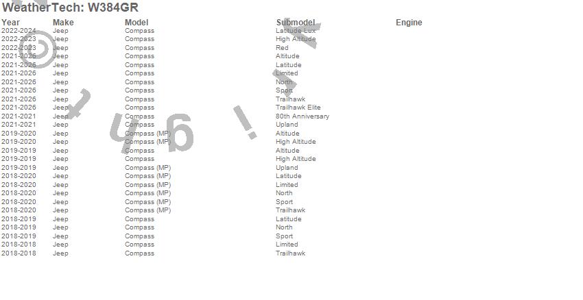 Below is an abbreviated list of applications for the All Weather Floor Mats.Compass, Jeep, 2026, 2025, 2024, 2023, 2022, 2021, 2020, 2019, 2018