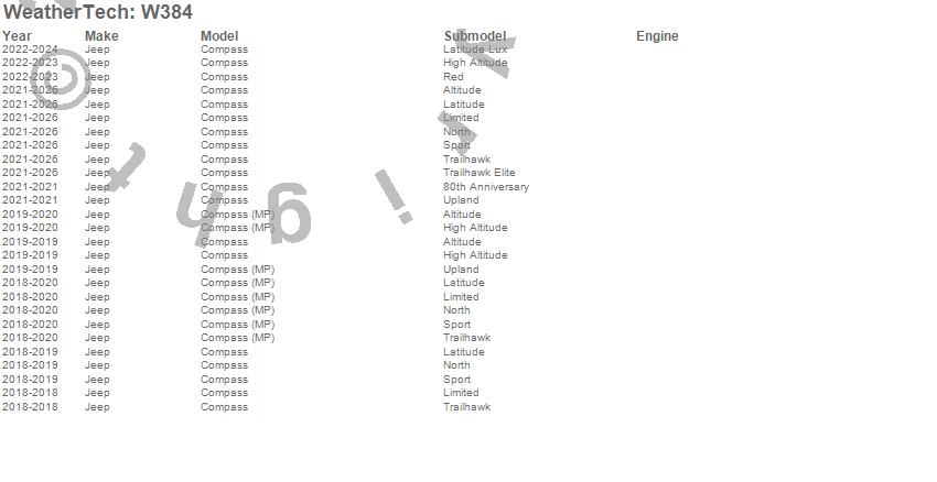 Below is an abbreviated list of applications for the All Weather Floor Mats.Compass, Jeep, 2026, 2025, 2024, 2023, 2022, 2021, 2020, 2019, 2018