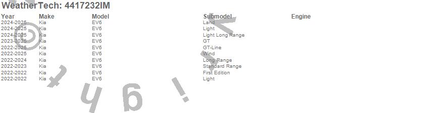 Below is an abbreviated list of applications for the FloorLiner HP.EV6, Kia, 2025, 2024, 2023, 2022