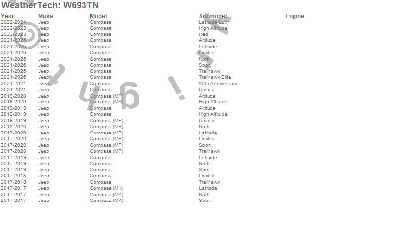 Below is an abbreviated list of applications for the All Weather Floor Mats.Compass, Jeep, 2026, 2025, 2024, 2023, 2022, 2021, 2020, 2019, 2018, 2017