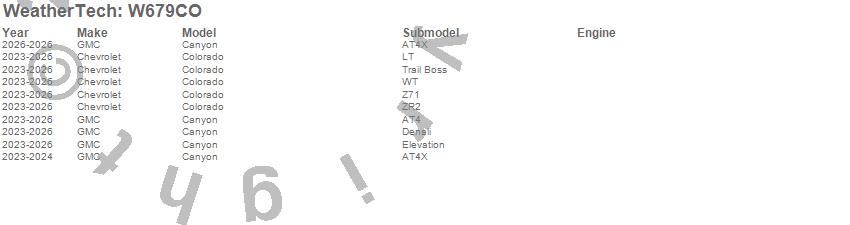 Below is an abbreviated list of applications for the All Weather Floor Mats.Canyon, Colorado, Chevrolet, GMC, 2026, 2025, 2024, 2023